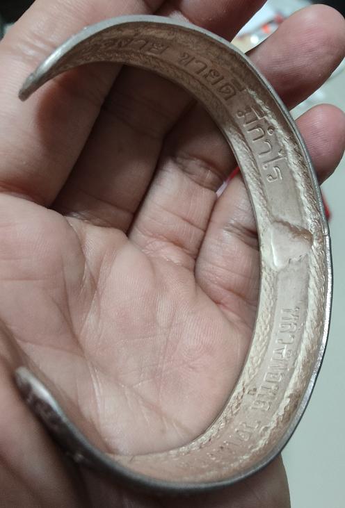กำไลเงินเพิ่มพูล รุ่นแรก เนื้อเงิน 99.24% ทองคำ 0.615% น้ำหนัก 41.39 กรัม หลวงพ่อพูล วัดไผ่ล้อม จ.นครปฐม