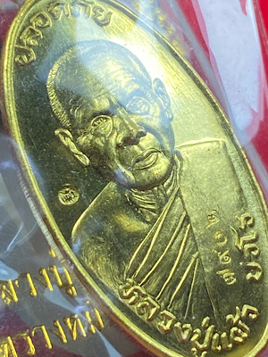 เหรียญใบขี้เหล็ก พิมพ์ใหญ่ หลวงปู่แผ้ว เนื้อฝาบาตร ปี 2556 ซิลเดิม พร้อมกล่อง