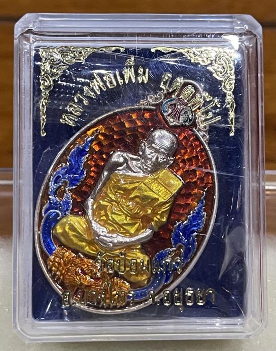 +++++วัดใจครับ++++เหรียญแจกทาน ปี2565 หลวงพ่อเพิ่ม วัดป้อมแก้ว จ.อยุธยา เนื้อเงินลงยา3สี no.141 เหรียญสวยในซิลเดิมพร้อมกล่องครับ
