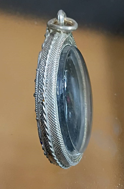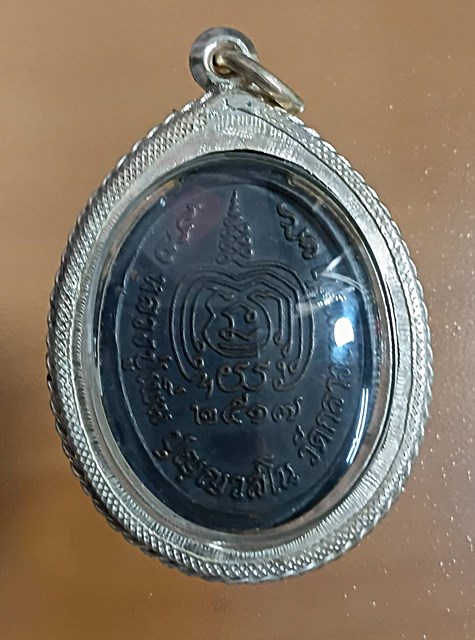 เหรียญเททองหลวงปู่เพิ่มวัดกลางบางแก้วเนื้อทองแดงรมดำปี 17 เลี่ยมเงินลงยา *** เคาะเดียว ***