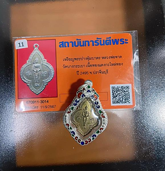 เหรียญปางอุ้มบาตร หลวงพ่อจาดวัดบางกระเบา เนื้อทองแดงกระไหล่ทอง ปี 2495 *** เคาะเดียว *** มีบัตรการันตีพระครับ ***