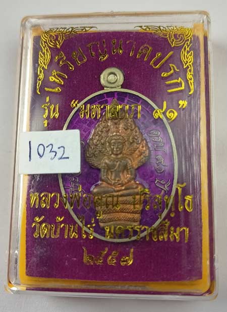 เหรียญนาคปรก หลวงพ่อคูณ มหาลาภ91 เนื้ออาปาก้า หน้ากากนวะโลหะ ลงยาสีม่วง (ชุดกรรมการอุปถัมป์) เบอร์ 1032 พร้อมกล่องครับ