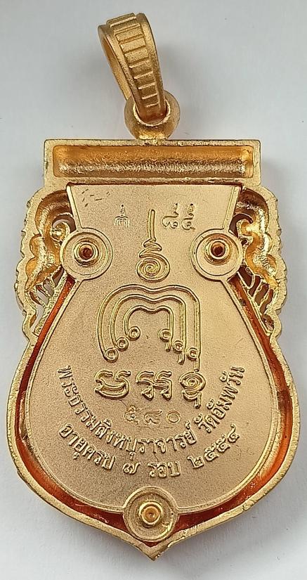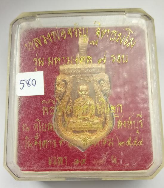 เหรียญเสมาฉลุลายยกองค์ (มหามงคล7รอบ) หลวงพ่อจรัญ วัดอัมพวัน ปี54 เนื้อทองแดงชุบพิ้งค์โกลด์ เบอร์ 580 พร้อมกล่องครับ