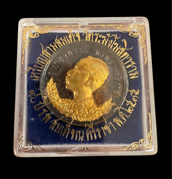 เหรียญรัชกาลที่ 5 เหรียญปราบฮ่อ รุ่น 90 ปี ร.พ.สมเด็จ ณ ศรีราชา ปี35 เนื้อสามกษัตริย์ (ทองคำ-เงิน-ทองแดง พร้อมกล่องเดิม) สภาพสวยเดิม