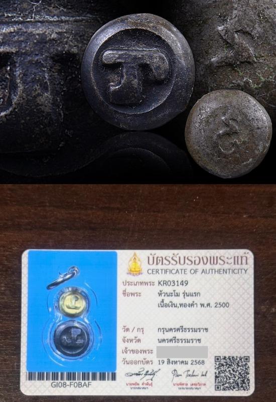 หัวนะโมเนื้อเงินเม็ดใหญ่กรุนครศรีธรรมราช ยุคแรก(เนื้อทองคำไม่อยู่แล้วครับ)พร้อมบัตรสมาคมให้พร้อมเนื้อเงินเม็ดใหญ่ รับประกันแท้และตามกฎครับ