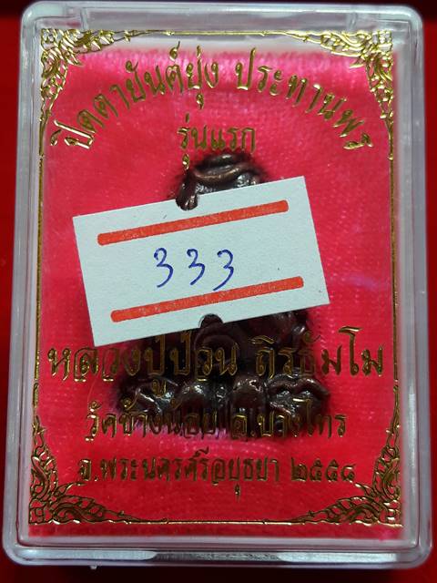 "วัดใจ" หมายเลขตอง 333 พระปิดตายันต์ยุ่ง ประทานพร มหาลาภ มหาเศรษฐี รุ่นแรก หลวงปู่ป่วน วัดช้างน้อย จ.อยุธยา เนื้อมหาชนวนมันปู อุดแร่มหาลาภหลวงพ่อปาน บรรจุเส้นเกศาหลวงปู่ป่วน สภาพสวยพร้อมกล่องเดิม สร้างน้อยเพียง 399 องค์