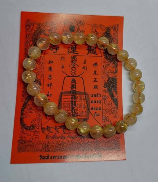 ***วัดใจ***แผ่นยันต์ เทพเจ้าไฉ่ซิงเอี๊ย วัดมังกรกมลาวาส (เล่งเน่ยยี่)กับ ข้อมือไหมทอง | Golded Rutilated Quartz ขนาด 6 มม.