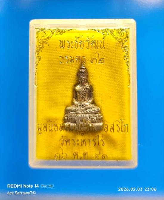 พระชัยวัฒน์รุ่นบรมครู 32 ก้นอุดผงพรายกุมาร มูลนิธิหลวงปู่ทิม อิสริโก วัดละหารไร่ สร้าง ปี 2541