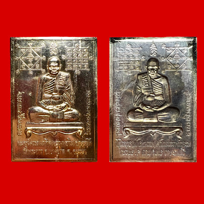 แผ่นปั๊มรูปเหมือน รุ่นเเรก + รุ่น 2 หลวงปู่ทิม วัดพระขาว เนื้อทองเหลือง สวย พระหายากเเล้วครับ