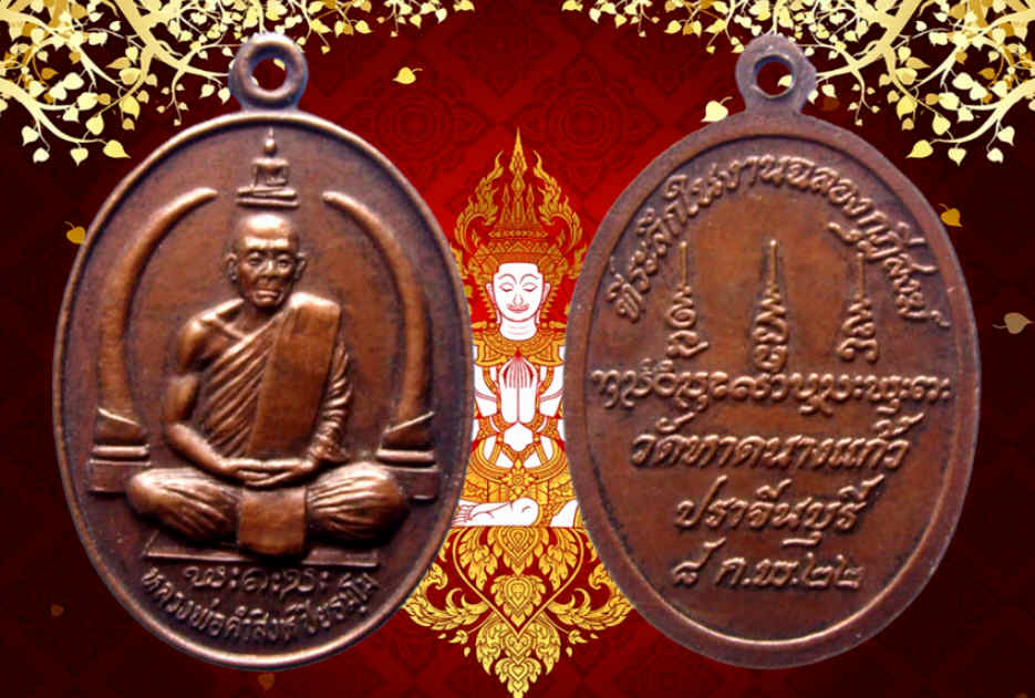 เหรียญงาคู่ หลวงพ่อคำสิงห์ วัดหาดนางแก้ว ศรีมหาโพธิ ปราจีนบุรี ทองแดง ปี2522