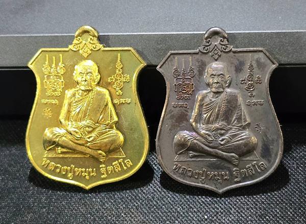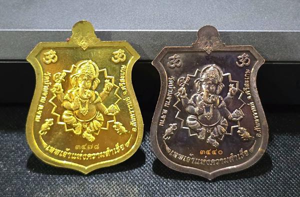 2 องค์ . สภาพสวย . เท่าไหร่เท่านั้น ... เหรียญมหาสำเร็จ หลวงปู่หมุน หลังพระพิฆเนศ เนื้อทองเหลือง + เนื้อทองแดงรมดำ วัดบ้านจาน ปี 60 + กล่องเดิม