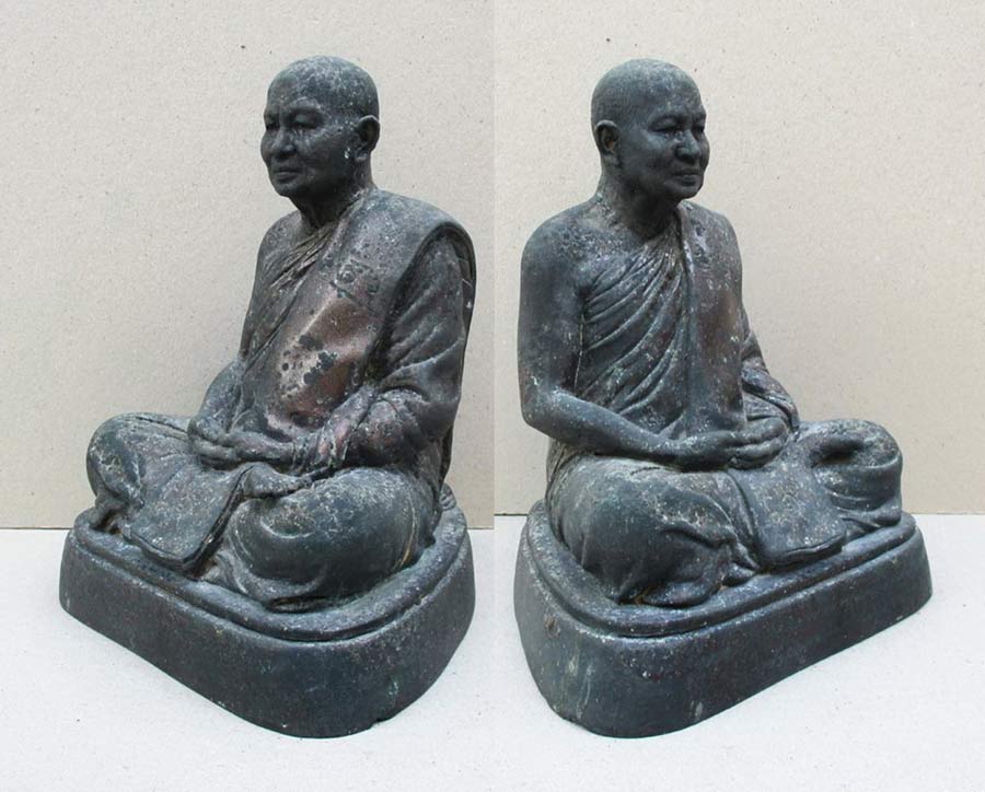 พระบูชา พระครูวรลักษ์บริบาล ( หลวงพ่อบัว ) วันบ้านหลวง เจ้าคณะอำเภอดอนตูม จ.นครปฐม รุ่น 1 พ.ศ.2532 หน้าตัก 5 นิ้ว เนื้อ โ ลหะรมมันปู ผิวแห้งหิ้ง !!