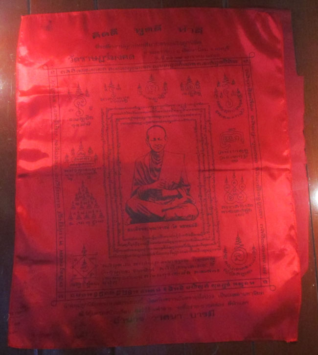 ผ้ายันต์ ที่ระลึกงานผูกพัทธสีมาปิดทองฝังลูกนิมิต วัดราษฏร์มงคล อ.พัฒนานิคม จ.ชลบุรี ครับ (พระบ้าน ครับ)
