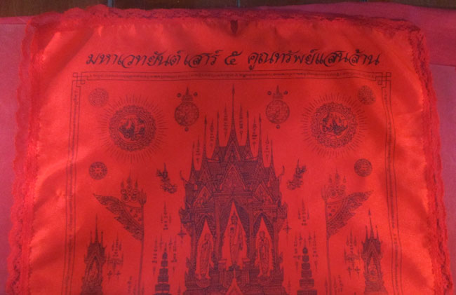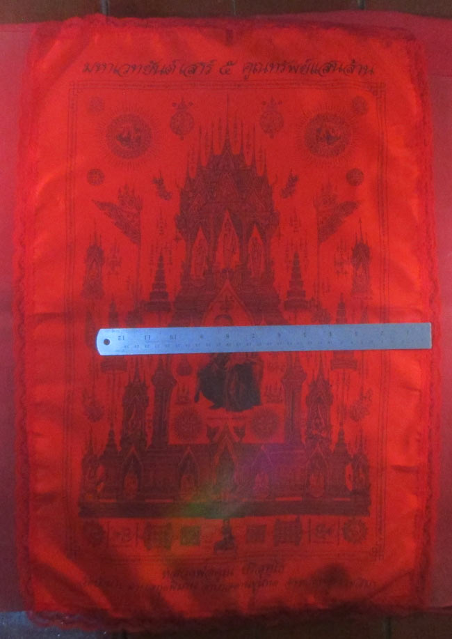 ผ้ายันต์ มหาเวทยันต์ เสาร์ ๕ คูณทรัพย์แสนล้าน หลวงพ่อคูณ ปริสุทฺโท วัดบ้านไร่ อ.ด่านขุนทด จ.นครราชสีมา ครับ (พระบ้าน ครับ)