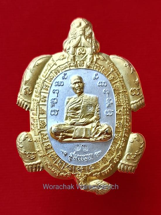 เคาะแรก!! เหรียญเต่ามังกร รุ่นแรก หลวงปู่หา สุภโร หรือ หลวงปู่ไดโนเสาร์ วัดสักกะวัน จ.กาฬสินธุ์ ปี ๖๒ เนื้อชุบสองกษัตริย์ ตอกโค้ด สังฆาฏิ เลข ๗๒ เลขสองหลัก สวยเดิม พร้อมกล่องเดิม
