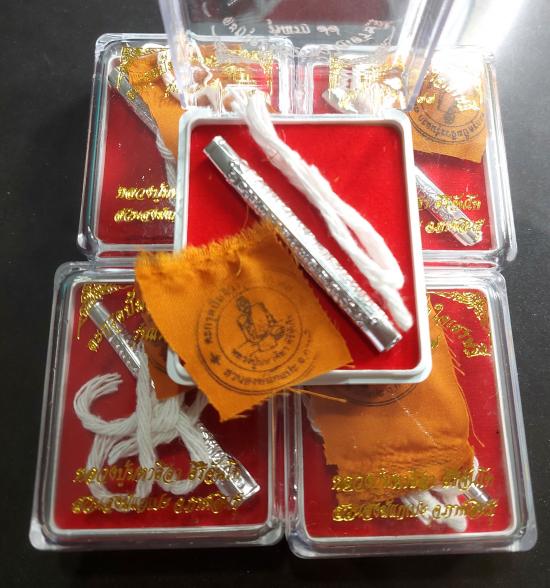 ตะกรุดเงิน ปั๊มจีวรหัวใจเศรษฐีรุ่นแรก 77 ยุคต้น หลวงปู่ศิลา สิริจันโท จำนวน 5 กล่อง