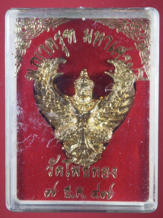 พญาครุฑ รุ่นมหาเศรษฐี หลวงพ่อวราห์ วัดโพธิทอง ปี 2547 เนื้อกะไหล่ทอง ตอกโค๊ดใบโพธิ์ สวยกล่องเดิม