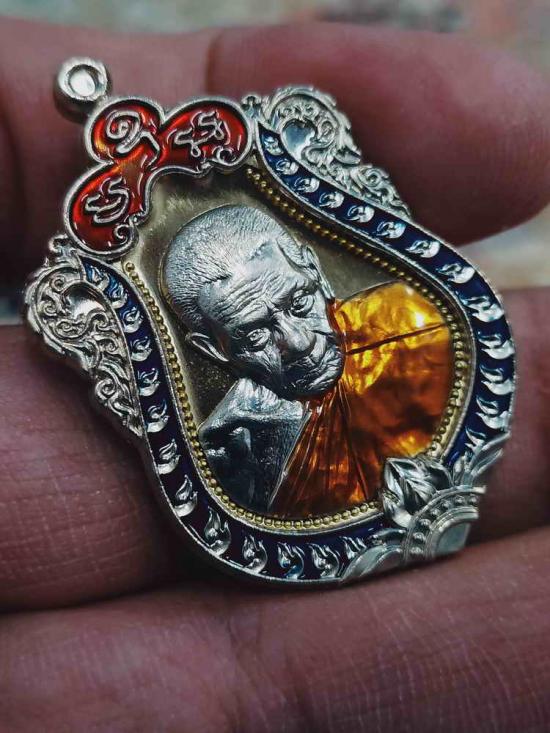 วัดใจ 100 เหรียญเสมาฉลองสมณศักดิ์ หลังพัดยศ หลวงปู่อิ่ม วัดทุ่งนาใหม่ จ.นครศรีธรรมราช 2566 ฝาบาตร หน้ากาก ขอบอัลปาก้า ลงยาขอบ จีวร หมายเลข 17 กล่องเดิม