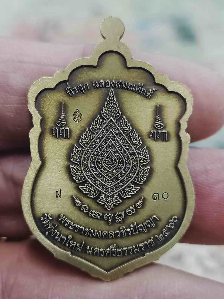 วัดใจ 100 เหรียญเสมาฉลองสมณศักดิ์ หลังพัดยศ หลวงปู่อิ่ม วัดทุ่งนาใหม่ จ.นครศรีธรรมราช 2566 ฝาบาตรซาติน ลงยาขอบ จีวร หมายเลข 30 กล่องเดิม