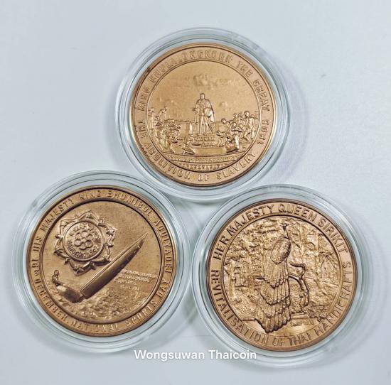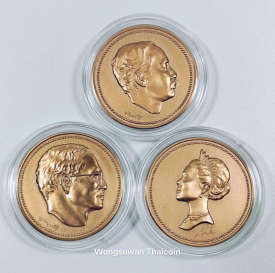 เหรียญที่ระลึกเบญจมหามงคล ทองแดง 32 ม.ม. ชุดกล่อง 3 เหรียญ