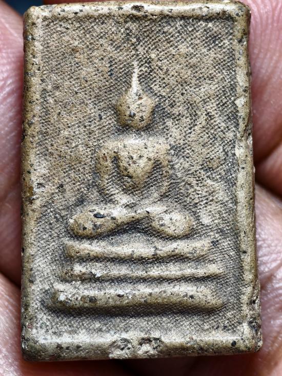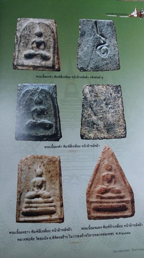 หลวงพ่อเพชร พิมพ์สี่เหลี่ยม เนื้อผงขาว หน้าผ้าหลังผ้า ปี 2473
