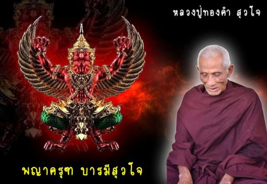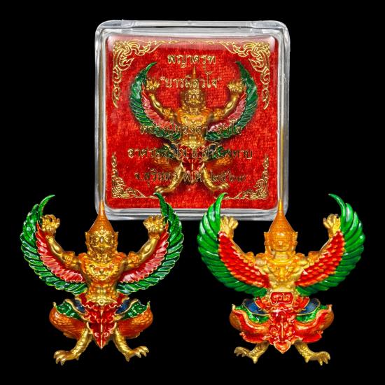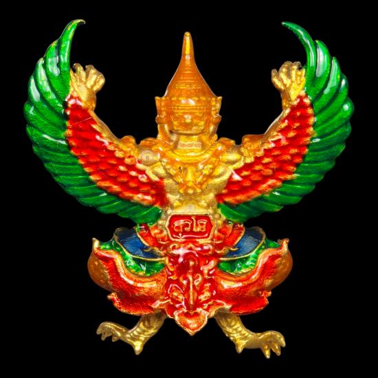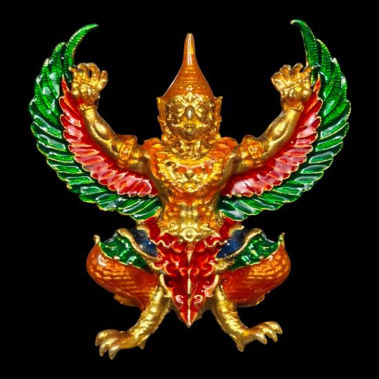 องค์พญาครุฑ บารมีสุวโจ หลวงปู่ทองคำ อาศรม สุวโจ อำเภอสำโรงทาบ จังหวัดสุรินทร์ เนื้อสัมฤทธิ์ชุบทองลงยาราชาวดี หมายเลข ๒๘๘ พร้อมกล่องเดิม