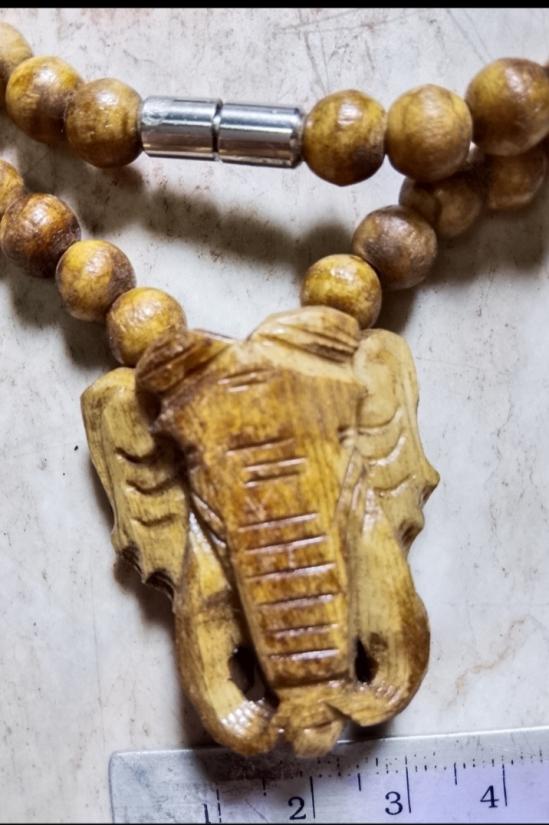 เคาะเดียวสร้อยพระแกะจากกระดูกนกกระจอกเทศวงกลางหัวช้างจะจากกระดูกนกกระจอกเทศทั้งชิ้นความยาว 25 นิ้วห้อยพระได้ 1 องค์