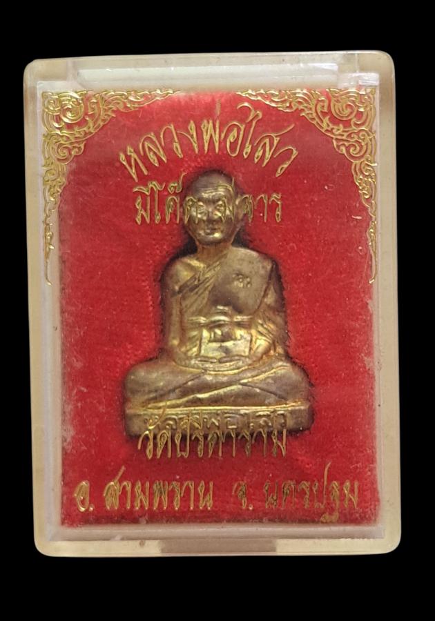 รูปเหมือนปั๊ม (รุ่นพิเศษ) เนื้อทองเหลือง หลวงพ่อไสว วัดปรีดาราม ปี 2538 ใต้ฐานตอก 2 โค๊ตมีจาร