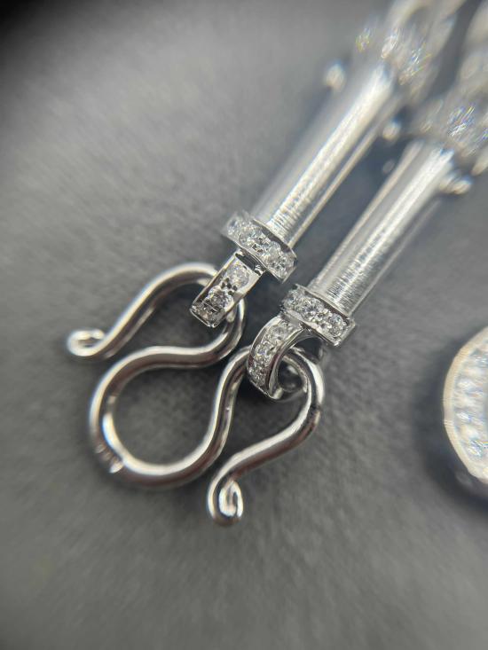 สร้อยคอเงิน ดัมเบลฝังเพชรCZ ชุบทองขาว White rhodium แท้