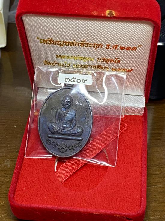 เหรียญ หล่อโบราณ ที่ระฤก รศ 233 หลวงพ่อคูณ ((เต็มองค์)) เนื้อเหล็กน้ำพี้ ดำๆ หมายเลข สวย 3509