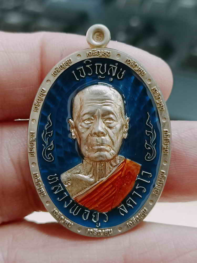 วัดใจ 100 PSGA เหรียญเจริญสุข งานบุญกฐิน หลวงพ่อยูร สคารโว วัดพนมเศษเหนือ จ.นครสวรรค์ ปี 2566 เนื้ออัลปาก้า กนกข้าง ลงยาน้ำเงิน จีวร หมายเลข 102 กล่องเดิม ***ป๋องสุพรรณการันตี