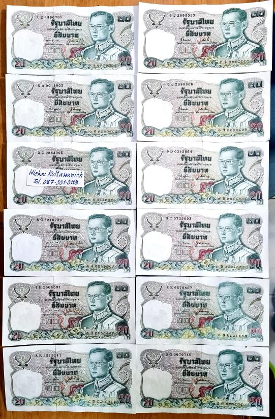 ธนบัตร ร 9 แบบ 12 ชนิดราคา 20 บาท เลขไม่เรียง 12 ใบ สวยๆ ตีเป็นผ่านใช้น้อยมาก ราคาเบาหวิว