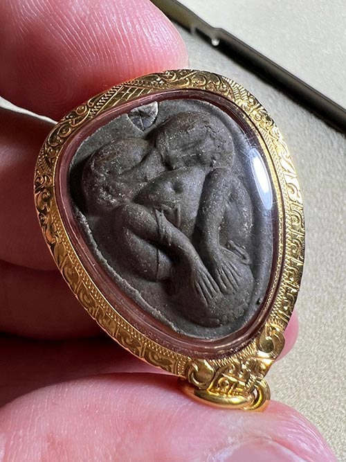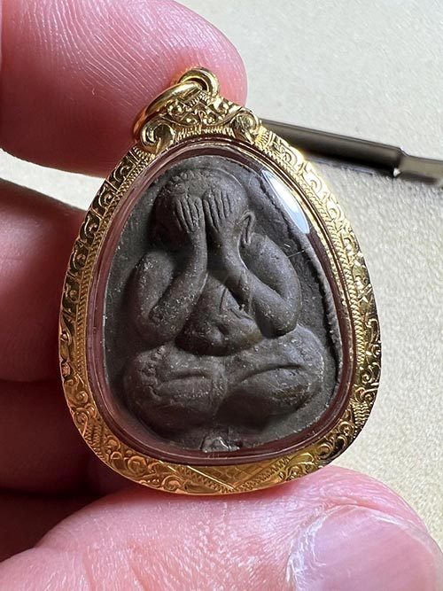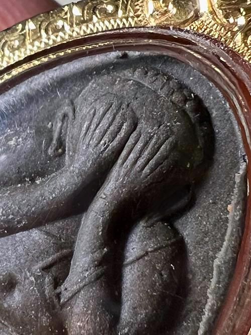 ปิดตายันต์ดวงเล็ก ปี21 เนื้อใบลาน(เนื้อดำ) สภาพสวย นิ้วติดชัด ยันต์หลังคมชัด พร้อมเลี่ยมทองยกซุ้ม (มีบัตรรับรองพระแท้)