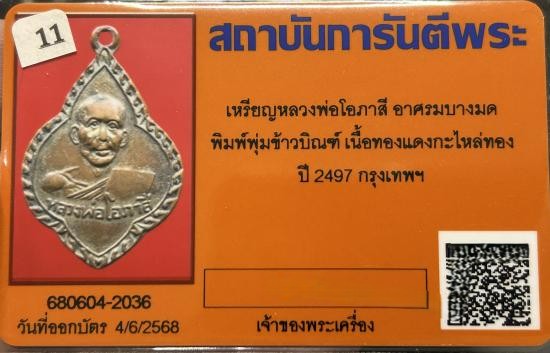 เหรียญหลวงพ่อโอภาสี อาศรมบางมด พิมพ์พุ่มข้าวบิณฑ์ เนื้อทองแดงกะไหล่ทอง ปี 2497 กรุงเทพฯ สนใจสอบถามเพิ่มเติม 0891730266