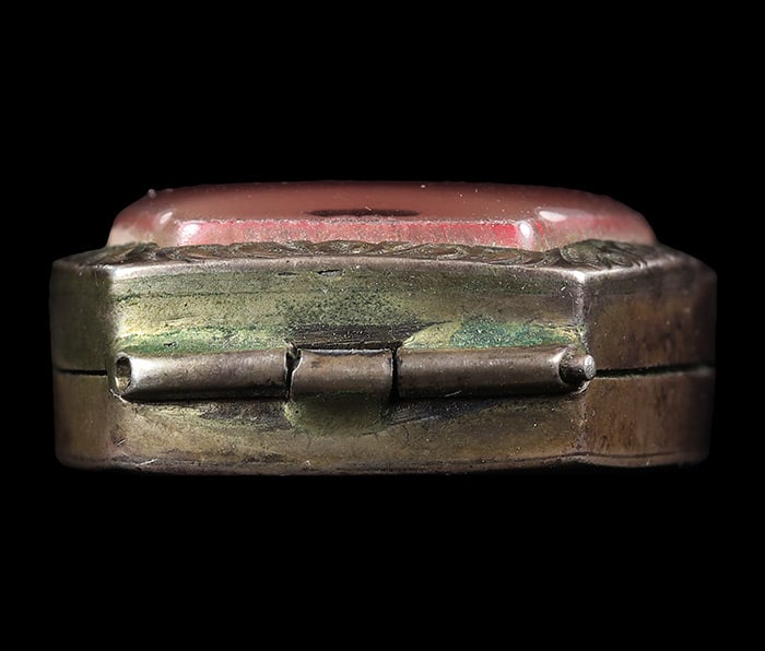 ตลับเงินหนาๆแข็งแรง บานพับแน่น เจ้าของเดิม ตัดใส่ปรกเนื้อชินพระกรุ