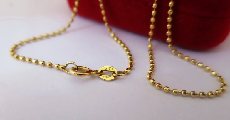 สร้อยคอทองเค 18K750 italy ลายเม็ดยิลตันสวยมากๆ ความยาว 16.6 นิ้ว น้ำหนัก 3.26 กรัม . เม็ดโต 1.4 มม. สร้อยสวยขนาดกำลังดีแข็งแรงดีครับ