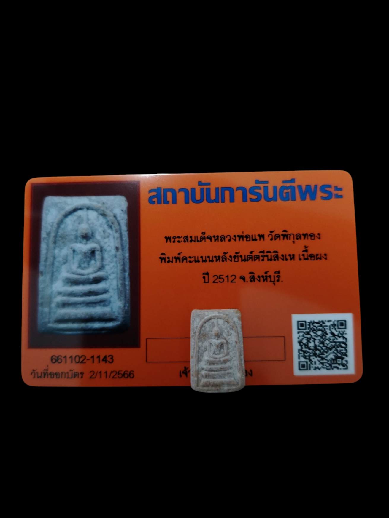 สมเด็จคะแนนหลวงพ่อแพวัดพิกุลทอง หลังยันต์ตรีนิสิงเหปี 12 มาพร้อมบัตรรับรอง