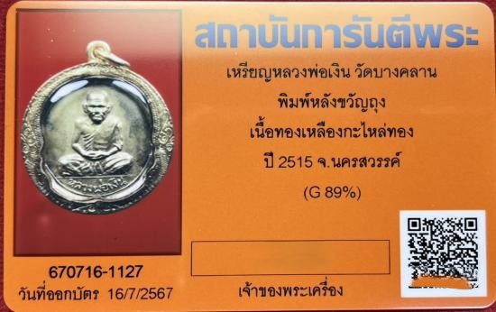 เหรียญขวัญถุง หลวงพ่อเงิน วัดบางคลาน เนื้อทองเหลืองกระไหล่ทอง ปี 2515 เลี่ยมทองหนาๆ เปอร์เซ็นทองสูง พร้อมบัตรรับรอง