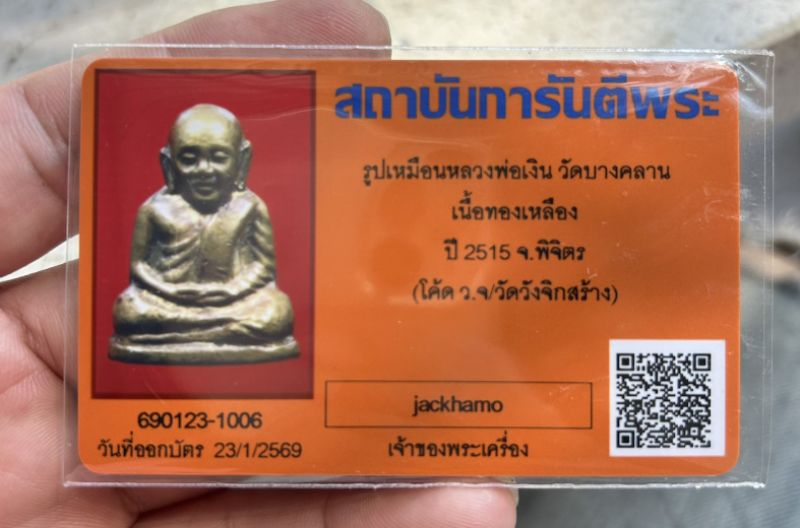 รูปเหมือนปั๊มหลวงพ่อเงิน บางคลาน เนื้อทองเหลือง พิมพ์มือจุด(นิยม)ออกวัดวังจิก ปี 2515