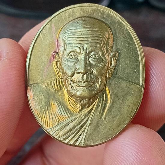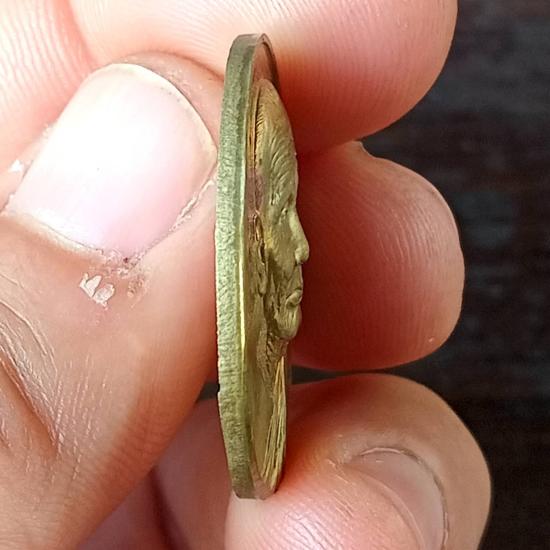 แดงเคาะแรก เหรียญหลวงปู่ทวด รุ่นที่ระลึกสร้างพระตำหนักปากพนัง (สร้างบ้านให้พ่อ) เนื้อทองฝาบาตร พิมพ์ใหญ่