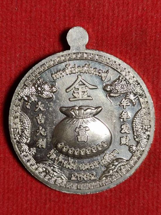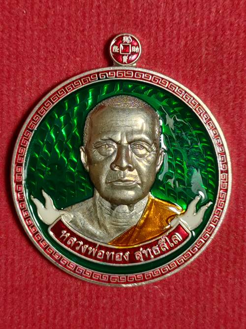 รุ่นแรกเหรียญขวัญถุง มหาโชคมังกรคู่ หลวงพ่อทอง สุทธสีโล ออกวัดบ้านไร่ ปี 62 เนื้อ เงินลงยาสีเขียว หมายเลข 6 สภาพสวย เคาะเดียวแดง