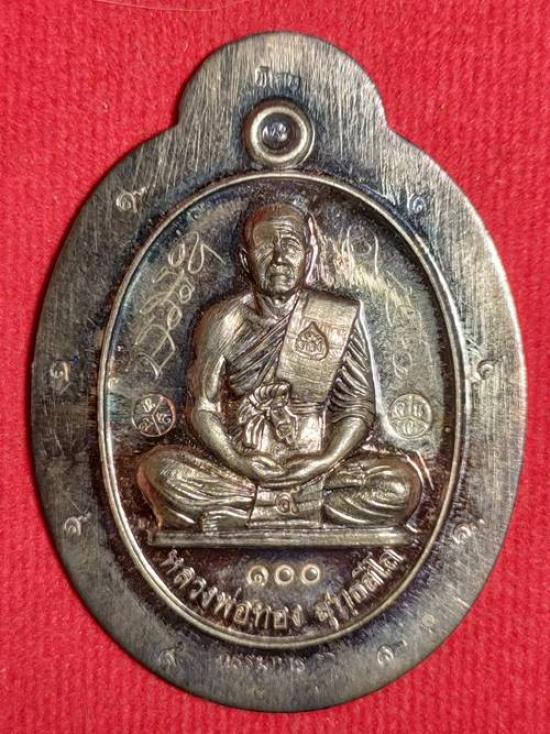 วัดใจตรงหน้าผากเป็นรอยไม่มีกล่อง เหรียญหลวงพ่อทอง สุทธสีโล รุ่น สร้างบารมี 60 ออกวัดบ้านไร่ ปี 60 พิมพ์จัมโบ้ เนื้อ เงินพิมพ์กรรมการไม่ตัดปีกหลังเรียบ หมายเลข 100 ตอกโค๊ตเลข 9 เก้าตัว เคาะเดียวแดง