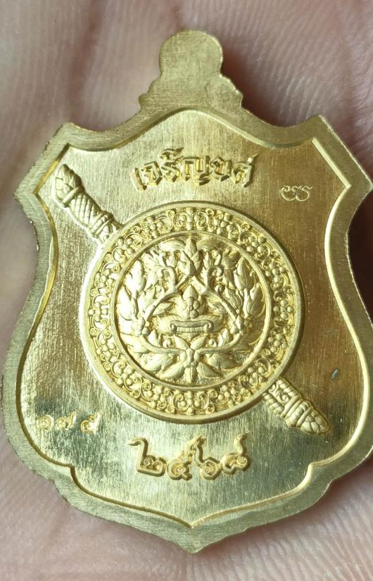 เหรียญหลวงพ่อโต รุ่น"เจริญยศ"ประวัติศาสตร์ตำรวจ๒๕๖๘ วัดบางพลีใหญ่ใน จ.สมุทรปราการ พิมพ์เหรียญอาร์ม เนื้อทองทิพย์ คุ้ยพื้นลงยาแดง ลงยาจีวร หมายเลข ๑๗๕ พร้อมกล่อง เหรียญสวยมากคับ