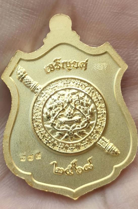 เหรียญหลวงพ่อโต รุ่น"เจริญยศ"ประวัติศาสตร์ตำรวจ๒๕๖๘ วัดบางพลีใหญ่ใน จ.สมุทรปราการ พิมพ์เหรียญอาร์ม เนื้อชุบทองพ่นทรายขัดเงา หมายเลข ๘๘๙ พร้อมกล่อง เหรียญสวยมากคับ โซนเลขมังกร เลขร่ำรวย น่าเก็บคับ