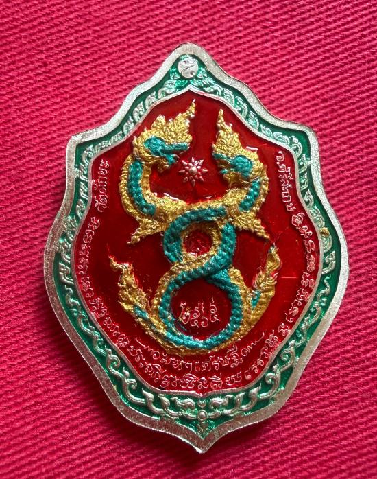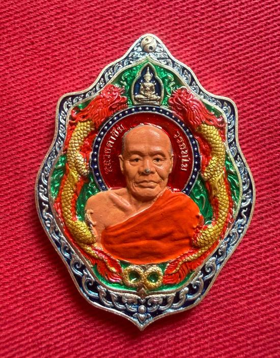 วัดใจไปเลย เหรียญมังกรคู่ รุ่นมหาเศรษฐี หลวงตาขึม วัดผักขะ จ.ศรีษะเกษ ปี 2565 เนื้อเงินเพ้นต์สีลงยา จมูกโดนนิดหน่อย