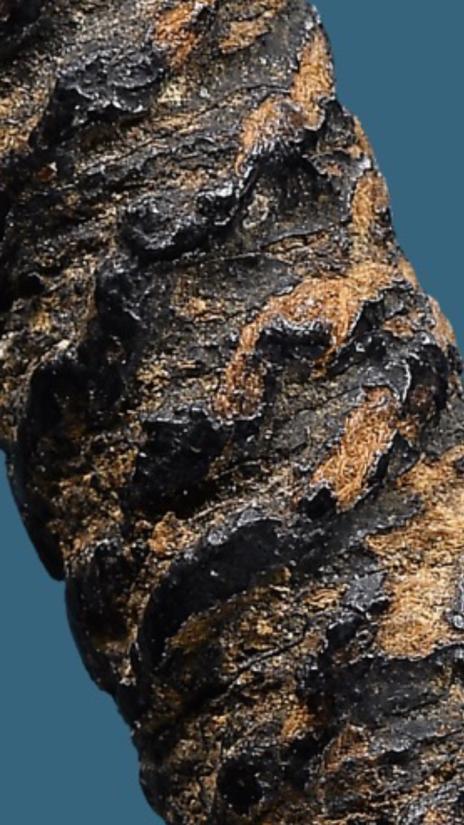 ตะกรุดสาริกา หนังหน้าผากเสือถักเชือกลงรักเก่า อายุร้อยปี ไม่ทราบที่ ขนาดความยาว 2 นิ้ว