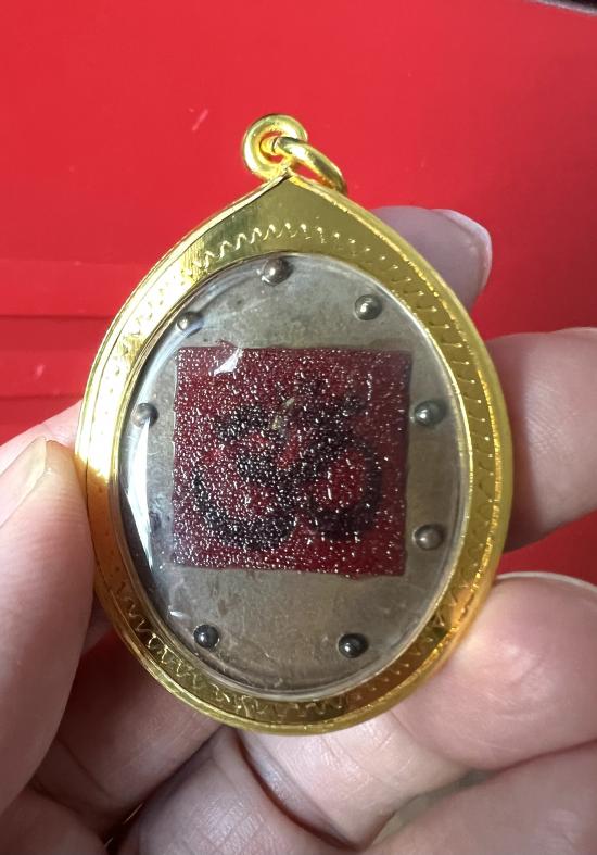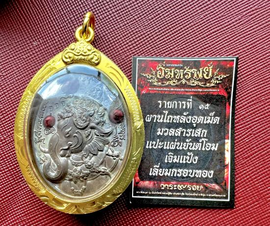 พระพิฆเนศ เนื้อผานไถ หลังอุดมวลสารเสก แปะผ้ายันต์โอมเจิมแป้ง หมายเลข 222 พร้อมกรอบ