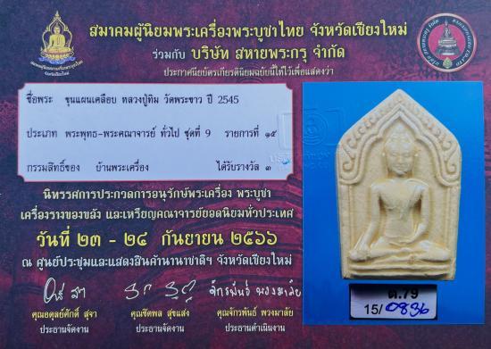 พระขุนแผนเคลือบ พิมพ์ใหญ่ รุ่นแรก สีขาว ปี 45 หลวงปู่ทิม วัดพระขาว ฝังตะกรุดเงิน 3 ดอก สร้างน้อย 499 องค์ สวยมาก ส่งประกวดติดรางวัล ส่งพร้อมใบประกาศนียบัตร