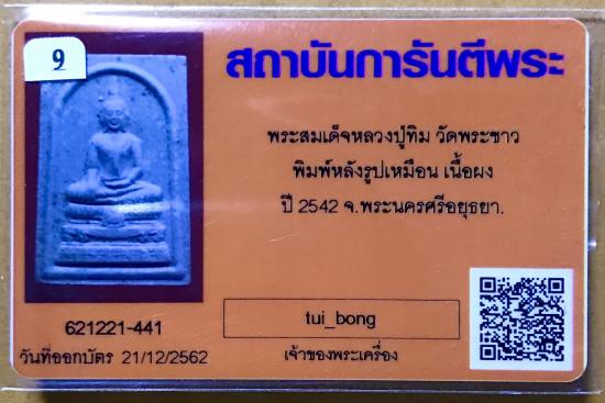 พระสมเด็จไตรมาส แช่น้ำมนต์ หลวงปู่ทิม วัดพระขาว พิมพ์หลังรูปเหมือน เนื้อผง ปี 2542 จ.พระนครศรีอยุธยา + บัตร G ปลุกเสกนาน 3 เดือน