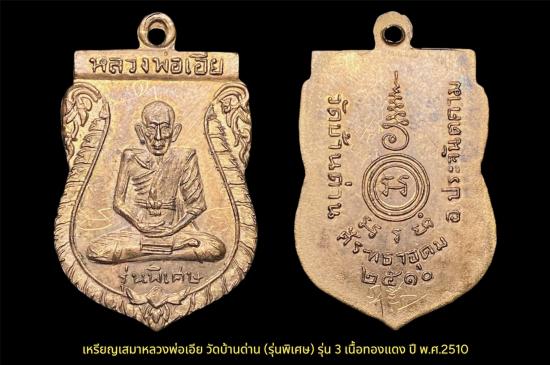 เหรียญเสมาหลวงพ่อเอีย วัดบ้านด่าน (รุ่นพิเศษ) รุ่น 3 เนื้อทองแดง ปี พ.ศ.2510 เคาะเดียว